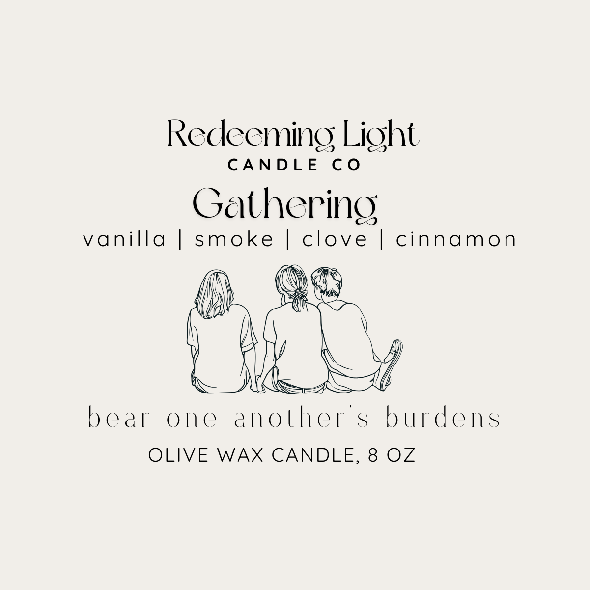 A cozy blend of vanilla, smoke, clove, and cinnamon fills the room with a sense of togetherness. Inspired by the words bear one another’s burdens, this candle is a gentle reminder of the comfort found in gathering and caring for one another.