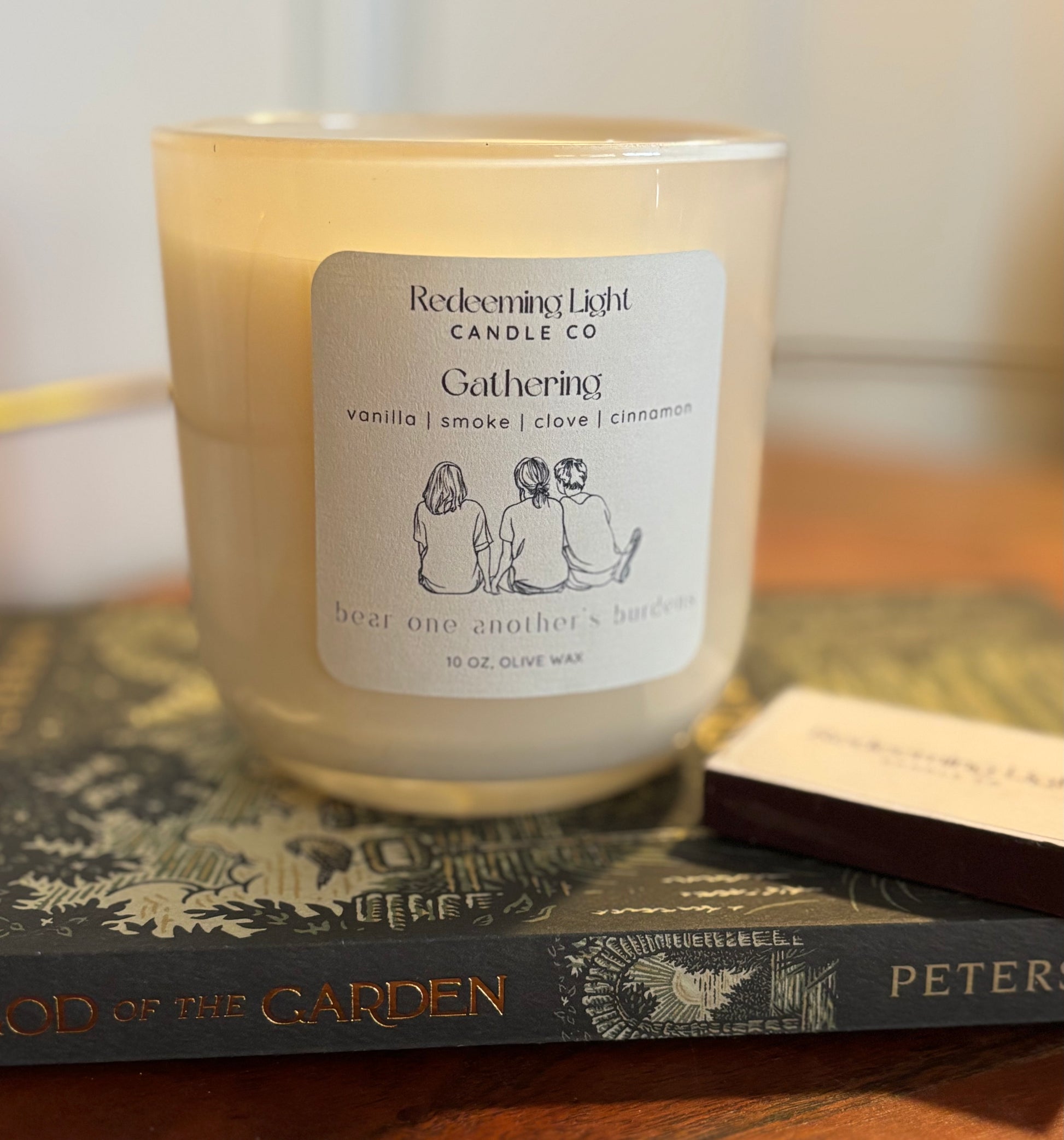 A cozy blend of vanilla, smoke, clove, and cinnamon fills the room with a sense of togetherness. Inspired by the words bear one another’s burdens, this candle is a gentle reminder of the comfort found in gathering and caring for one another.